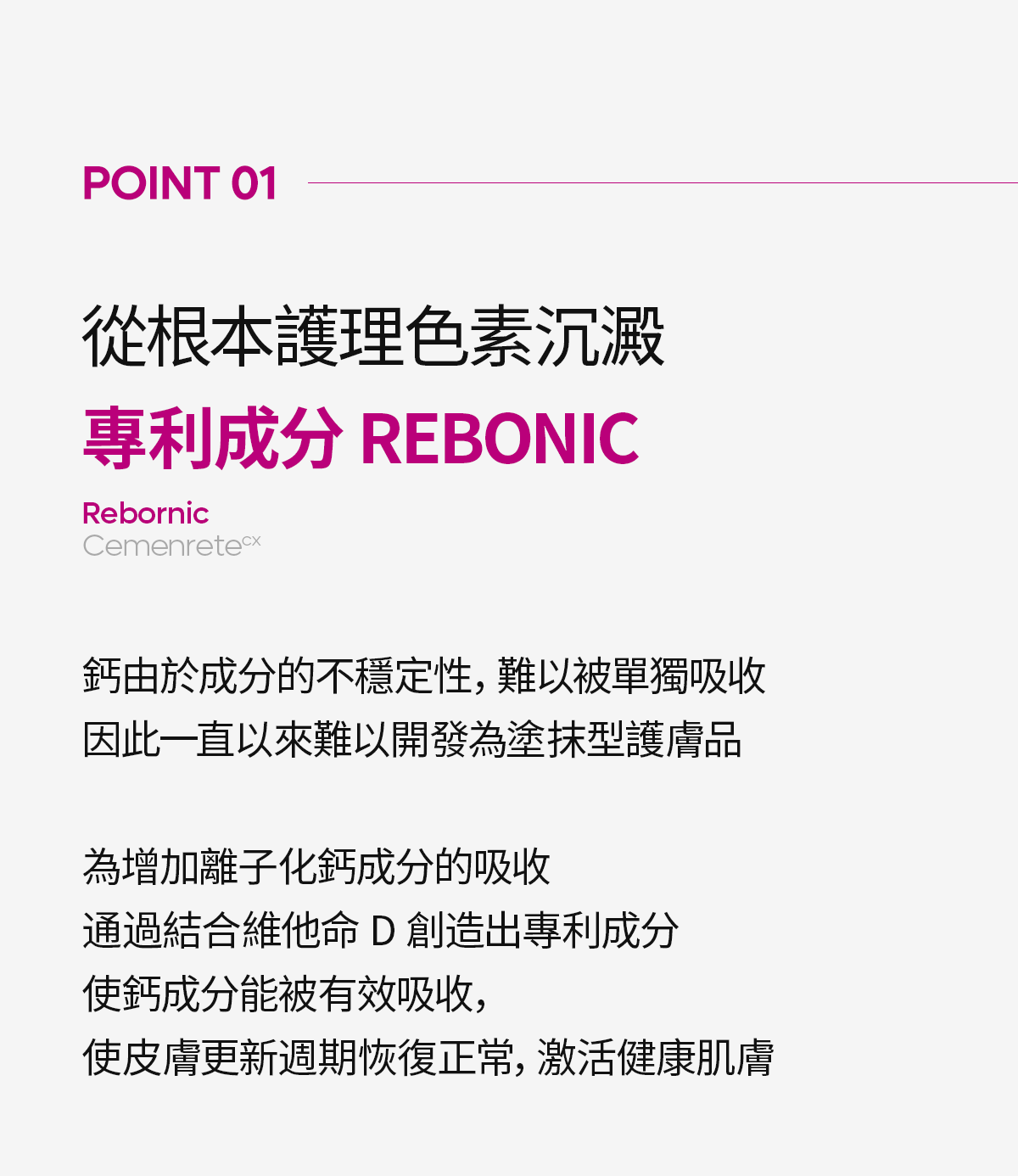 REBORNIC專利原料配合去除黑色素主要專利等成分
